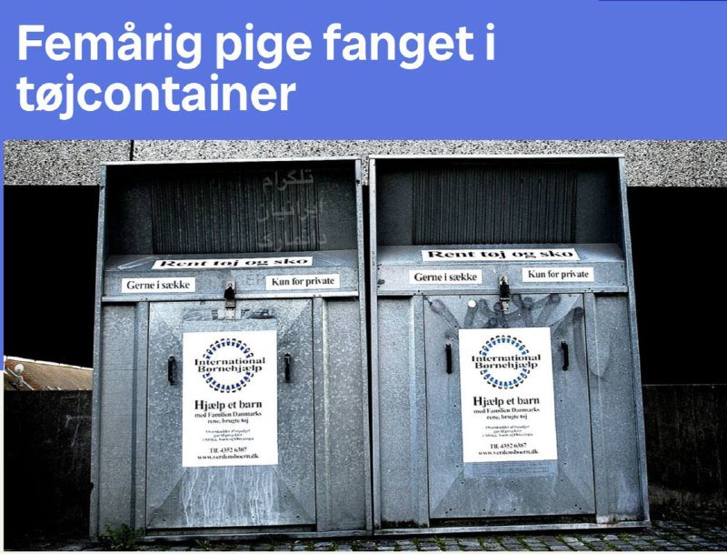 به گزارش شبکه خبر تی وی تو ، این حادثه در جنوب یولند رخ داد. دو کودک در نزدیکی کانتینر مشغول بازی بودند که یکی از آن‌ها به کمک دیگری خود را به دریچه‌ی بالای کانتینر رساند. هنگام سرک کشیدن به داخل، دختربچه لغزید و به داخل افتاد.