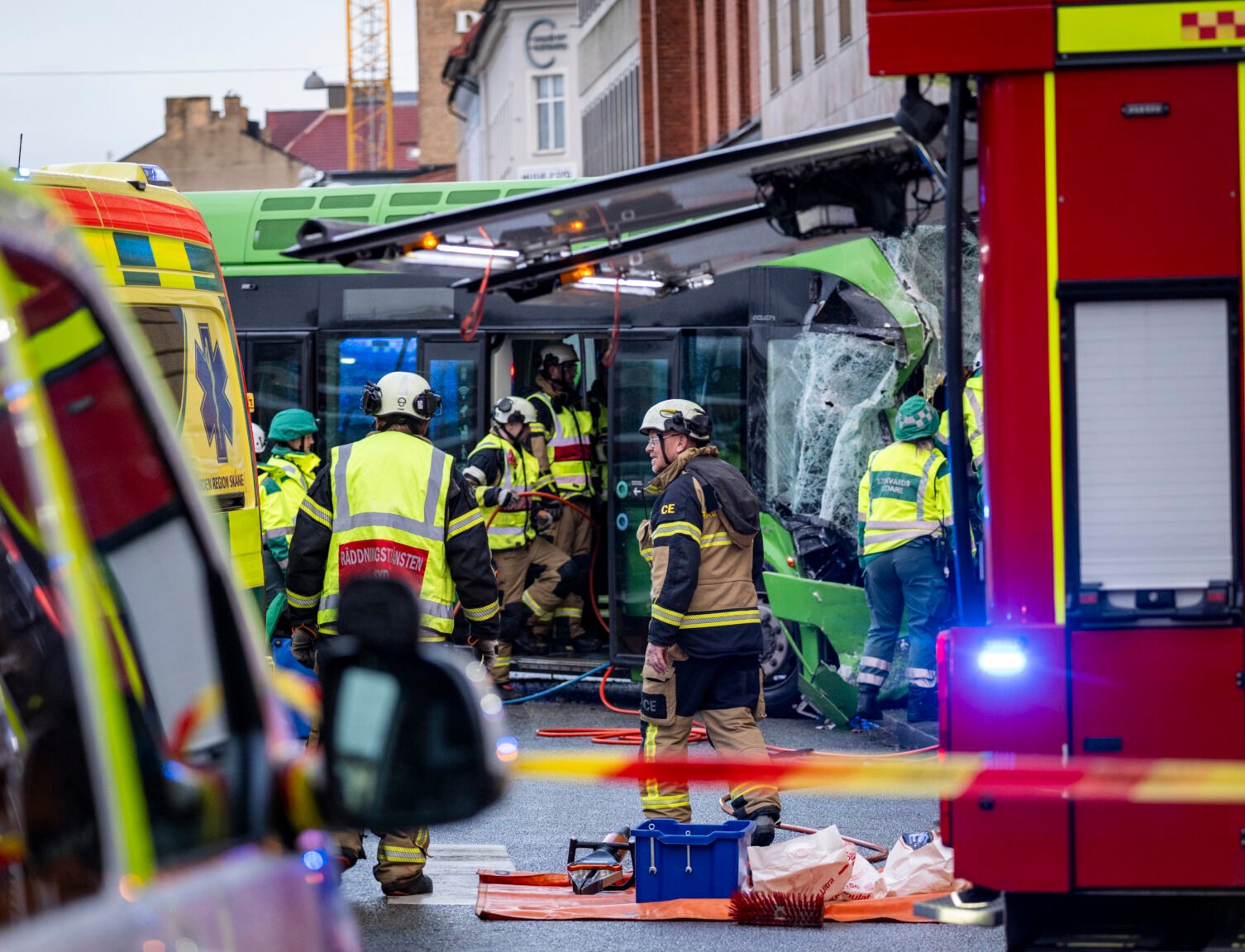 ماتیاس شولد، افسر وظیفه تیم نجات به یک روزنامه گفت Sidesvenscan اتوبوس سبز رنگ متعلق به خطوط شهری از پشت با اتوبوس زرد رنگ منطقه برخورد کرد، سپس منحرف شد و با ساختمان برخورد کرد، راننده همچنان در داخل اتوبوس محبوس است و در تلاش هستیم تا او را آزاد کنیم.